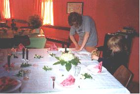 | Og bordet skal jo pyntes, og hvor er de igrunden kønne allesammen. |